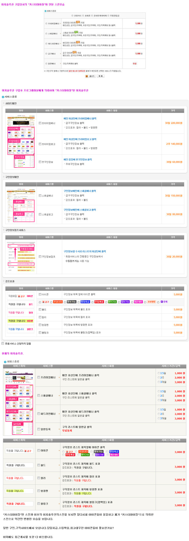아래는 제가 이천이지님에게 두차례에 걸쳐서 이지솔루션으로 만든 유흥 구인,구직사이트 입니다.