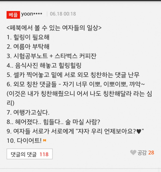 [유머] 페이스북에 자주 올라오는 여자들의 일상본문