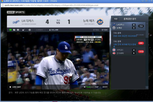류현진 중계에 따른 포털 독과점 심화(?) 정보
