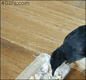 저 까마귀.... 정체가 뭘까요;; 고 넘;; 영리하네.