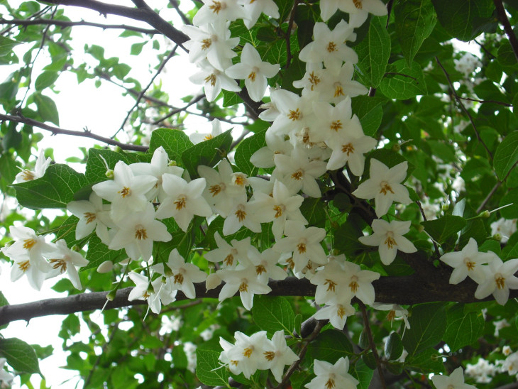 때죽나무 꽃 -종모양의 꽃이 아래로 매달려 핀다.