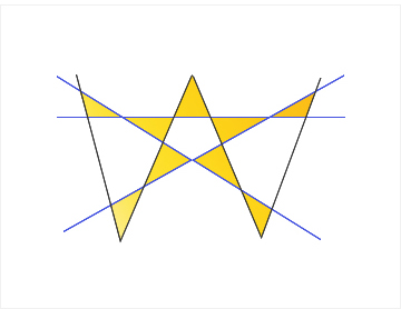 위 예제는 직선 7개로 삼각형 9개를 만든 예제입니다.