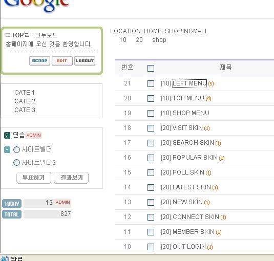 구누보드용 싸이트빌더 정보
