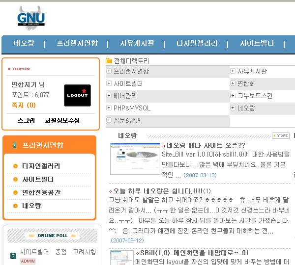 따라서 처음사용하시는분은 그누보드에서 공개한 정식 프로그램을  우선 사용하시는것이 좋다고 생각됩니다.