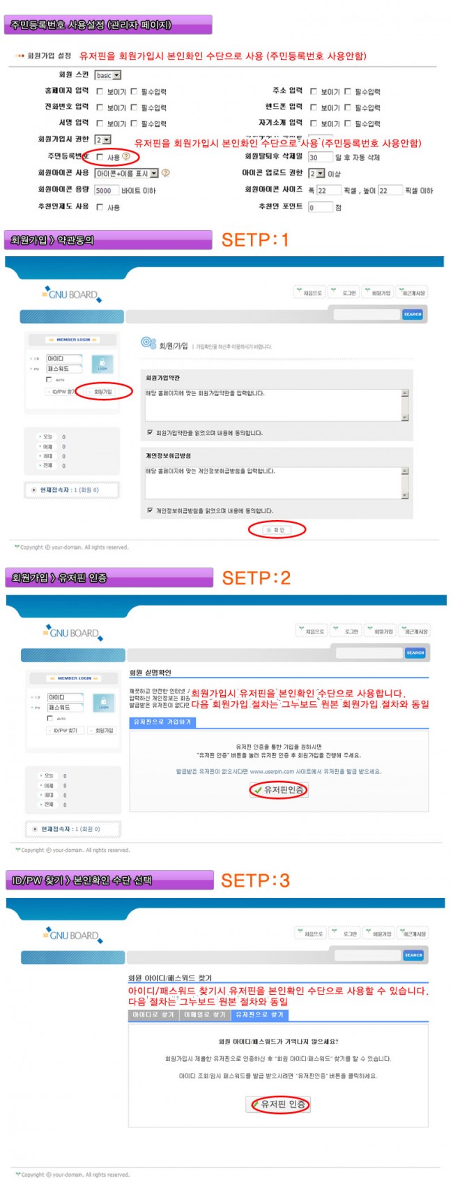 그누보드 기본 버전에 유저핀 서비스 중 USERPIN-CERT 서비스만 연동된 버전입니다.
