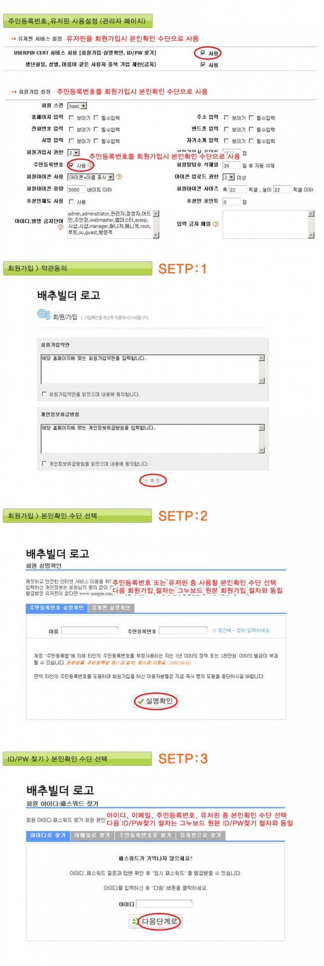 # 주민등록번호 또는 유저핀 회원가입시 본인확인 수단을 선택 할 수 있도록 수정