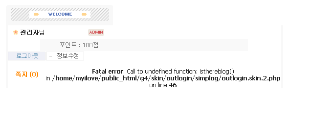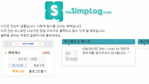 메인홈의 아웃로그인 스킨은 심플로그용 아웃로그인을 사용하면 안됩니다. 3번은 안고쳐야 합니다.