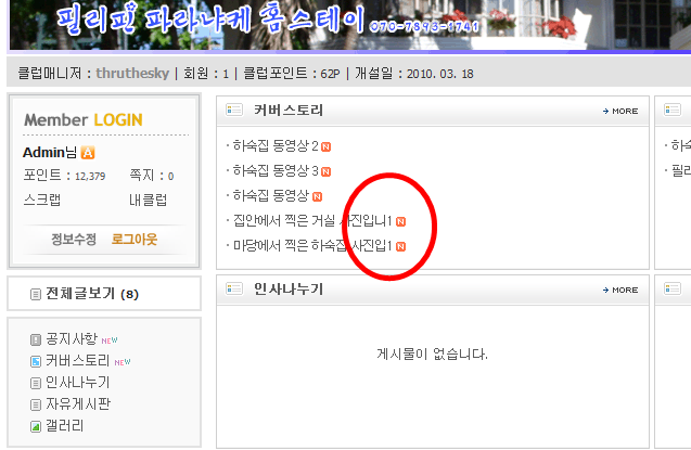 하지만 실제 해당 클럽 메인을 보면 그림 b5.png 와 같이 글이 사라져 버렸습니다.