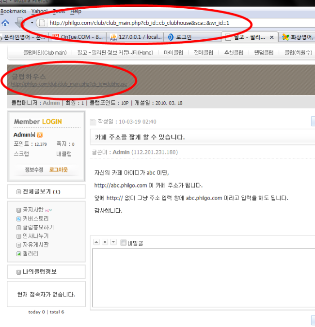 글을 쓰면 그 글이 클럽 메인(club_index.php)으로 올라가는 데 거기서 클릭해서 들어가면 그림 b2.png 와 같이 됩니다.