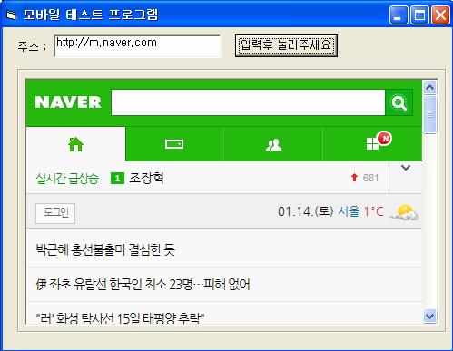 텍스트 박스안에 ( http:// 다음에 모바일 주소 입력 ) < 가로 모드 >