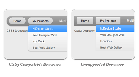 첫번째 이미지가 적용된 모습이고, 두번째 이미지는 CSS3 호환 브라우저와 호환되지 않는 브라우저에서 각각 어떻게 보이는지를 보여주는 원 출처의 스크린샷 이미지 입니다.