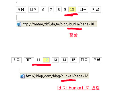 위 그림 같이 10페이지 이후의 페이지에서 이동하면 블로그 id 뒤에 0, 1,2,3 이런식으로 숫자가 붙어 페이지 이동이 안됩니다.