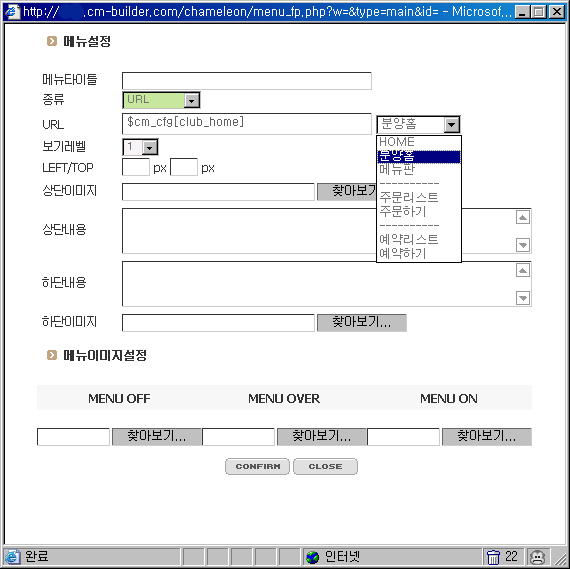 1. 메뉴관리에서 URL 타입의 경우 게시판, page외 별도의 컨덴츠 프로그램이