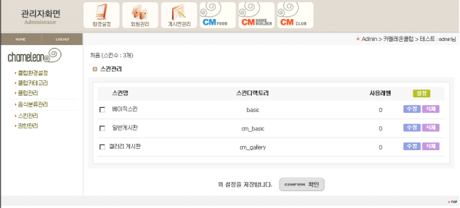 게시판 설정을 한정해줌으로써 포털단에서 사용되어져야할 스킨이