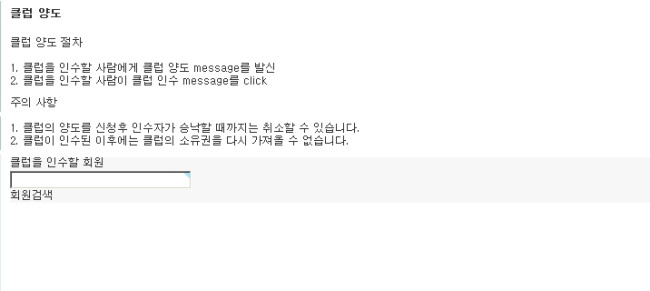 '클럽양도'에서 '확인'버튼이 어디있죠? 정보