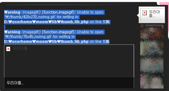 \/thumb 디렉토리에 쓰기 권한이 없다는 것 입니다.