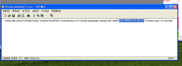 친구추가를 하거나 어떤 수정을 하면 그냥 그 화일이 열려버리네요.. 샘플로 하나 스샷 첨부합니다.
