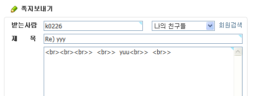 에디터 사용안하고 받은쪽지에서 답장을 누르면 <BR><BR><BR><BR><BR>
