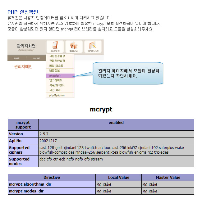 호스팅을 이용하신다면 mcrypt 라이브러리 설치를 요청해보세요.