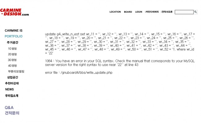 syntax 에러는 sql 구문상의 오류때문입니다.