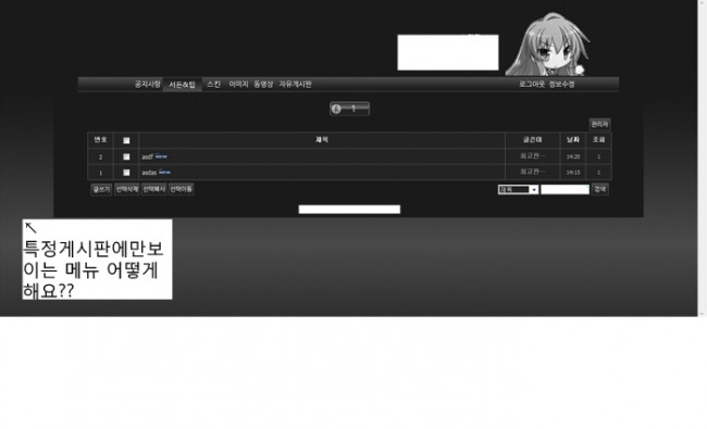 특정 게시판에만 왼쪽메뉴를 나타내고 싶습니다. 정보