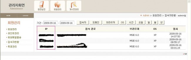 관리자 환경에서 보인는 IP를 안보이게 하는 방법본문