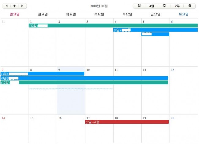 달력에 연속일정 표시하는법 정보