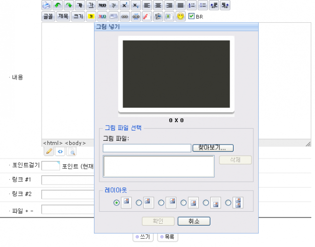 DiZiNOr 자기소개 아이디로 검색 회원게시물 자기소개 아이디로 검색 회원게시물 10.02.18 19:43:31 현재 보이는 화면은 cheditor 인거 같은데, 게시판을 만드시는 중이시다면 cheditor 소스를 넣어주시면 됩니다. 현재 보이는 화면은 cheditor 인거 같은데, 게시판을 만드시는 중이시다면 cheditor 소스를 넣어주시면 됩니다.