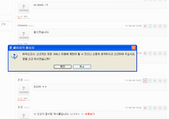이전 관리자님이 공개한 게시판 스킨중 신고기능을 참고해서 만들었습니다.