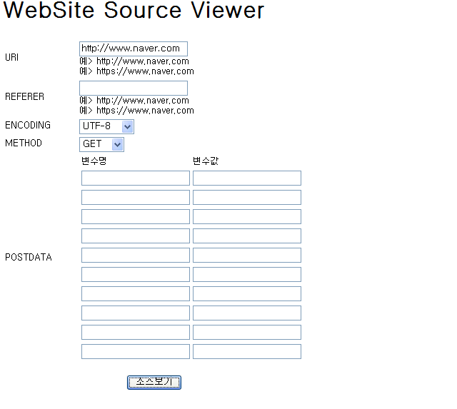 용도 : 웹사이트의 소스보기를 웹상에서 할수 있습니다.