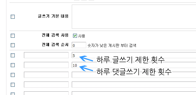 여분필드1에 5라고 적으시면 하루 한 아이피에서 5번만 글쓰기 가능합니다