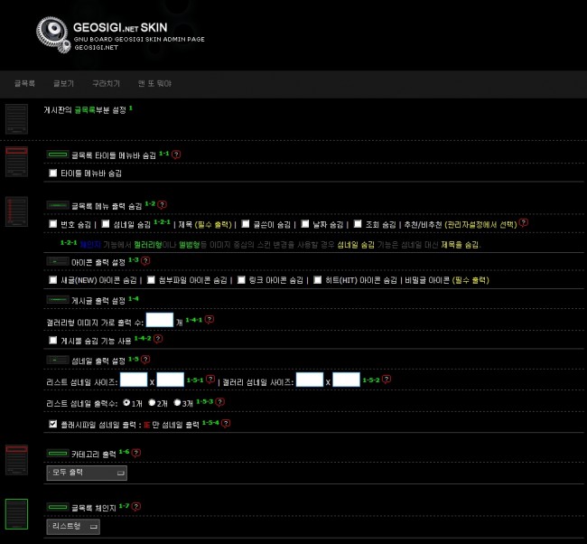 거시기 스킨 10차 : 이미지 & 섬네일 출력 설정 정보