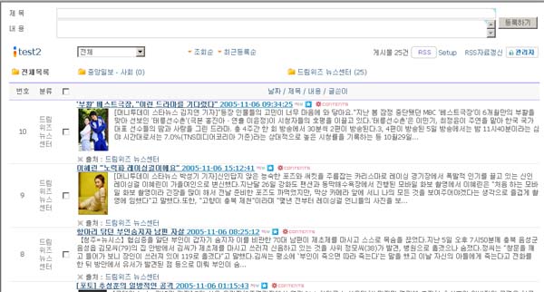 RSS자료 갱신으로 자료를 가져오면 멋진 게시판으로 되는 것 까지는 좋은데,