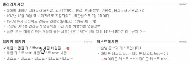 위쪽에 긴건 설교 / 아래 작은것 두개는 칼럼과 자유게시판