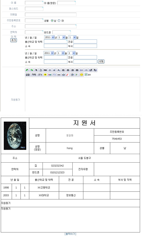 구직게시판이나, 이력서양식으로 좋네요. 수고하셨습니다. 추천~