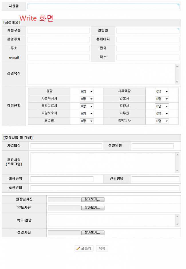 게시판 기본 스킨 뜯어서 만든 요양시설 등록 스킨입니다.첨부파일