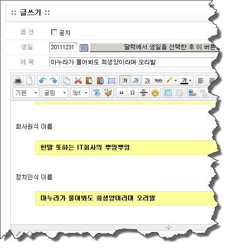 요즘 유행하는 OO식 이름 짓기 : 정치인 추가 버전 입니다.