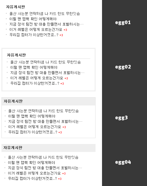 한가지 틀에 살짝CSS만 변경해서 4가지 스타일로 늘려놨습니다