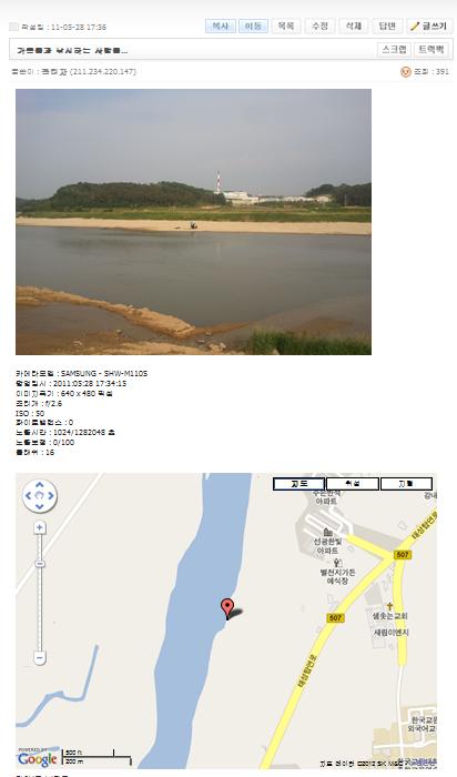 이 기능은 사진을 찍었을경우 그 이미지 안에 EXIF GPS좌표를 불러네 구글 지도상에 표기를 해주는