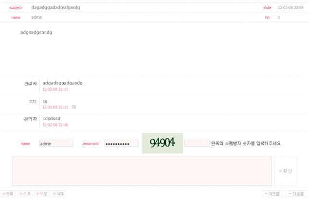 사용해 보려 했더니 비회원 글씨기 수정 때에 패스워드틀립니다 하고 에러납니다.