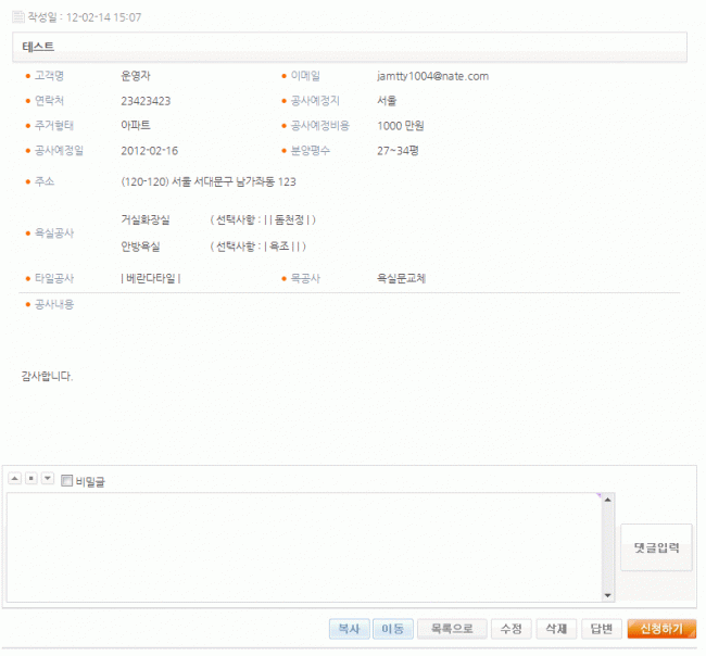 이번에는 인테리어 관련 견적문의 폼 입니다.