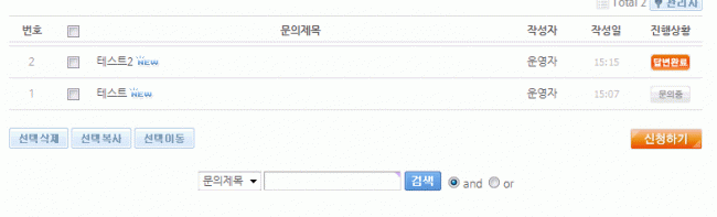 글작성시 "문의중" 관리자가 댓글답변시 "답변완료"