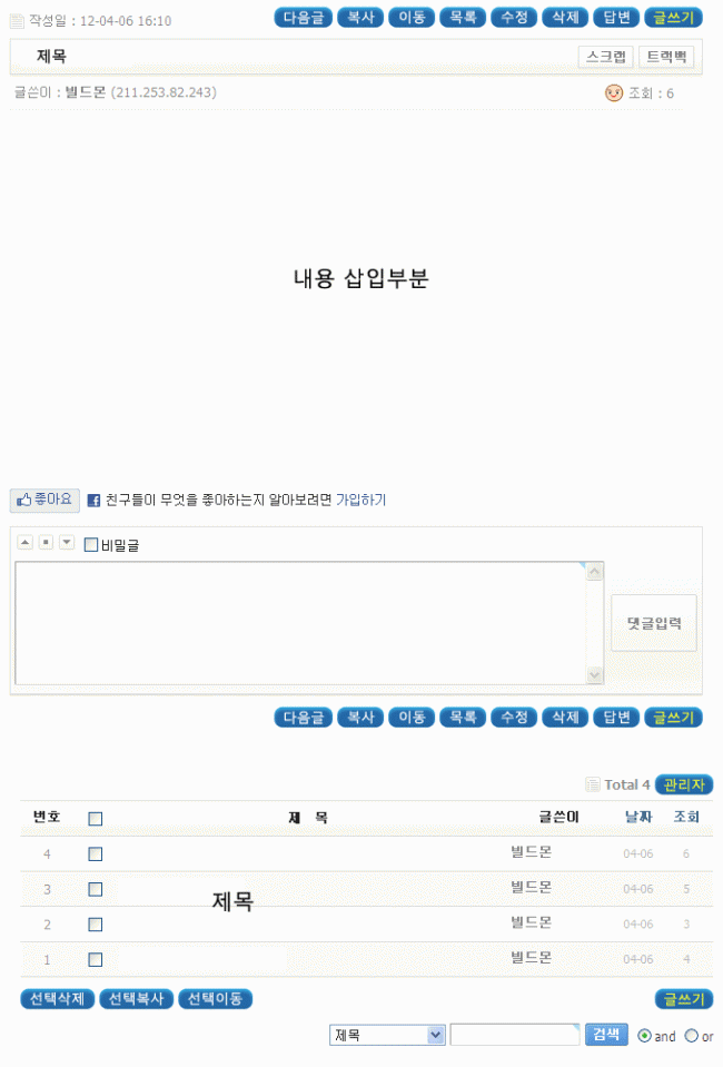 상단에 이전글, 다음글이 없어서 상단에 삽입, 리스트 검색창 위치변경 및 아이콘 이미지 일부 변경