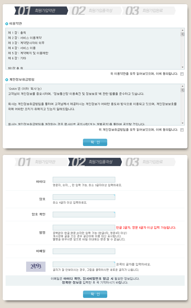 ■ 큐스킨(qskin.co.kr)에서 사용중인 회원가입 스킨입니다.