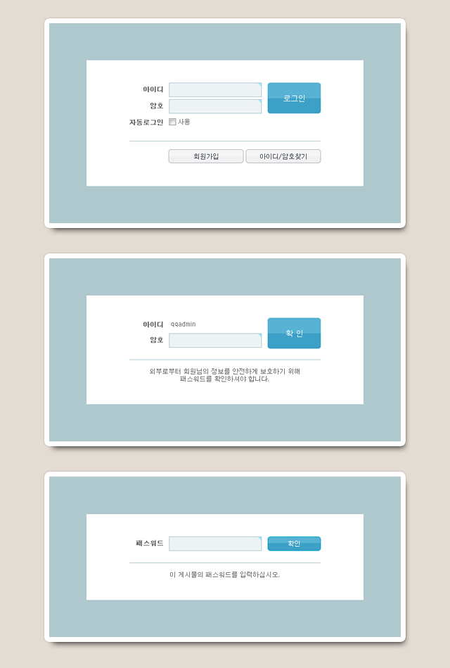 ■ 큐스킨(qskin.co.kr) 에서 사용중인, 로그인/회원학인/패스워드확인 스킨입니다.