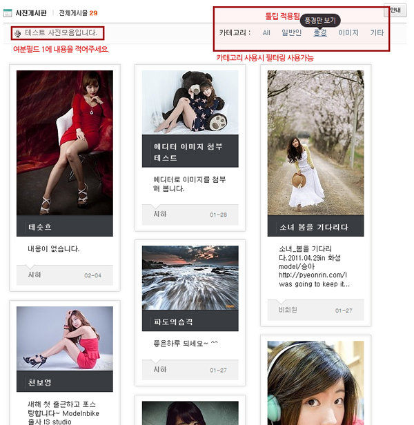 이 게시판은 분류가 있는 갤러리용으로 사용하셔야 보기 좋습니다.