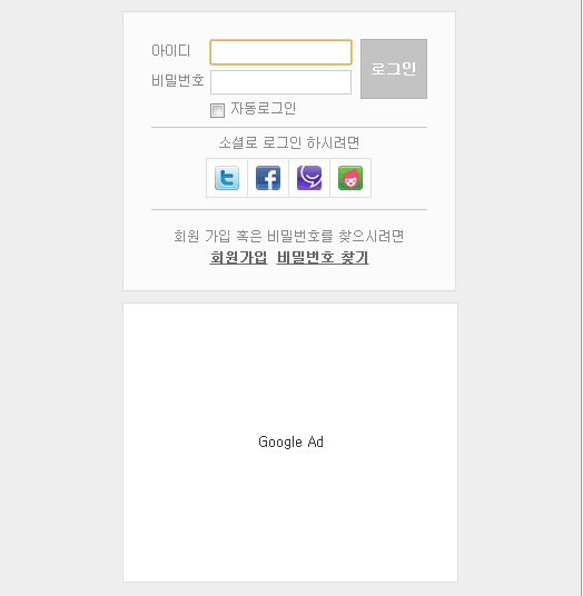 외부로그인 반응형 + 300x250 애드센스 로그인 페이지관련링크