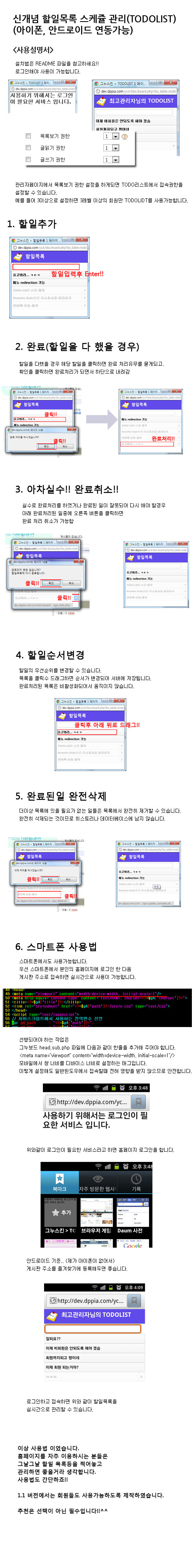 게시판 스케쥴관리 할일목록 (아이폰, 안드로이드 호환가능) [스마트폰 사용설명서 업데이트] (ver 1.1)