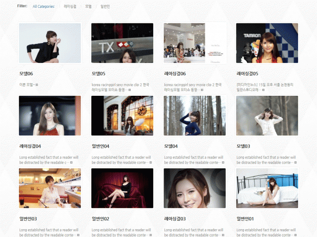 최신글 prettyPhoto와 filter를 사용한 카테고리를 지원하는 최신갤러리 (동영상도 리스트에서 시청가능)