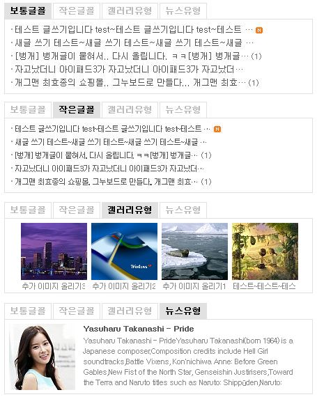 바꾸면 4번째탭에 해당하는 게시판 최근글이 하나도 출력되지 않는군요.